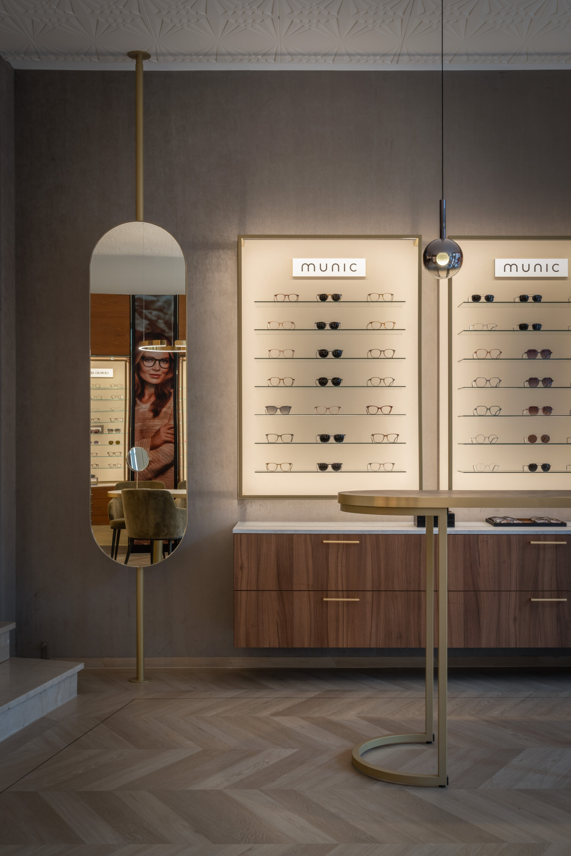 Deze opticien in München heeft een vernieuwd interieur met een rustige en heldere basis. Het maatwerkmeubilair en de indeling zorgen voor overzicht en laten de collectie goed naar voren komen.